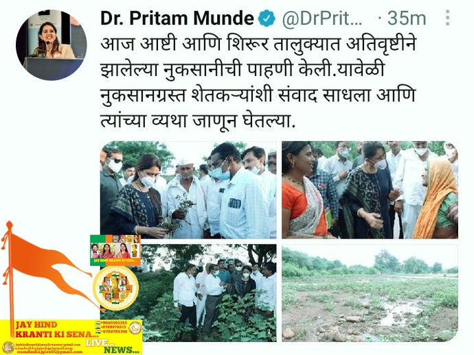 Hon Pritam Gopinath Munde(Khade) (Bajgire)Ji,Present in Today Ashti and Shirur in the taluka has Inspected Damaged by heavy rains...