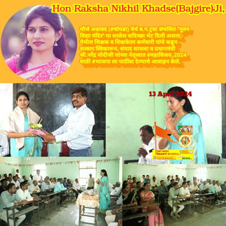 🇮🇳Hon Raksha Nikhil Khadse(Bajgire)Ji,Present in Adawad,Chopda here B.G Trust Affiliation 'Nutan Vidya Mandir, institute has Given Goodwill visit.There lecture and other employees has Took felicitation By there, Perfect done Communication.and Prime Minister of india 🇮🇳 Hon Narendra Damodardas Modi Ji, Their leadership has Done Vote to BJP For Victorious Win Election -2024 Parliament...-Deputy Prime Minister of india 🇮🇳 Hon Namdev Kishan Bajgire