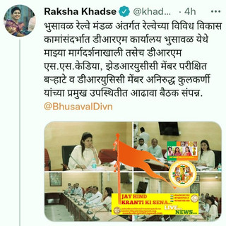 Hon Raksha Nikhil Khadse(Bajgire)Ji,Present in Bhusaval railway circle through railway various development In terms for work has done review meeting DRM office Bhusaval here Their front as well as DRM Hon s.s.kediya Ji,zrucc member Hon parikshit barhate Ji,and zurcc member Hon anirudh kulkarni Ji, chief in present...-Namdev Kishan Bajgire